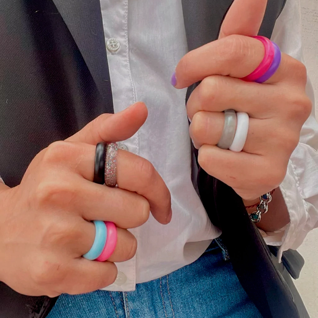 Anillo enteramente hecho en resina, a mano. Viene de a pares.