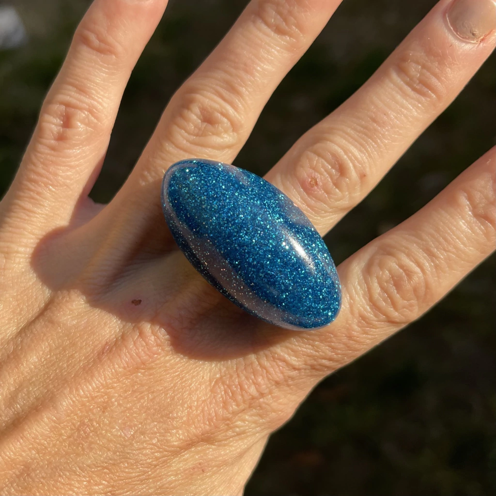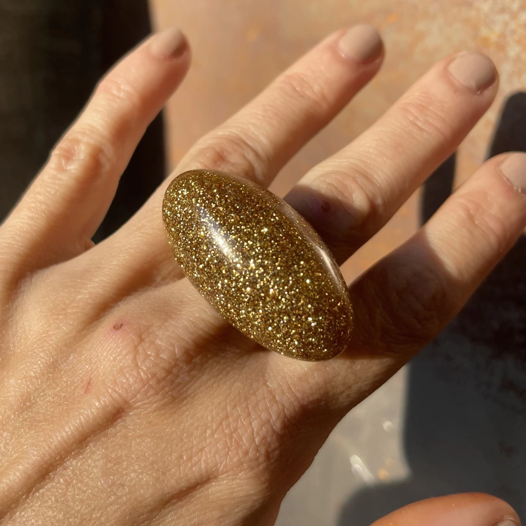 Anillo QUEEN: un accesorio de resina hecho a mano, original, liviano y cómodo. Su diseño impactante y atemporal lo convierte en la pieza ideal para cualquier ocasión.