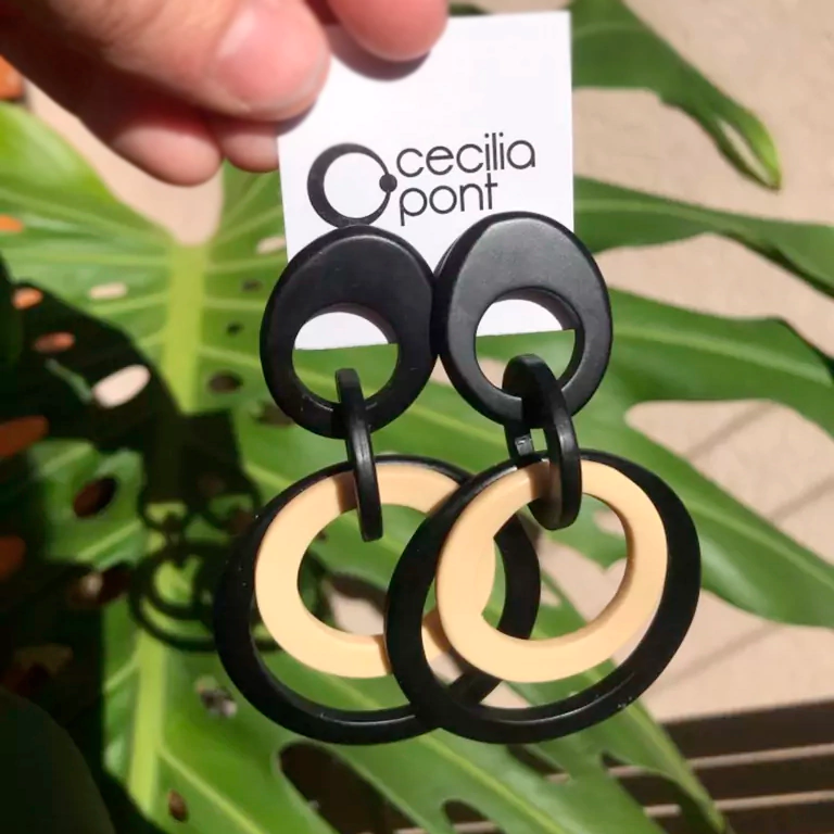 Nuestros Aros Adela están hechos completamente a mano en resina, asegurando que cada pieza sea única y de alta calidad. La delicadeza en su fabricación artesanal les otorga un acabado exclusivo que se destaca en cualquier ocasión.
