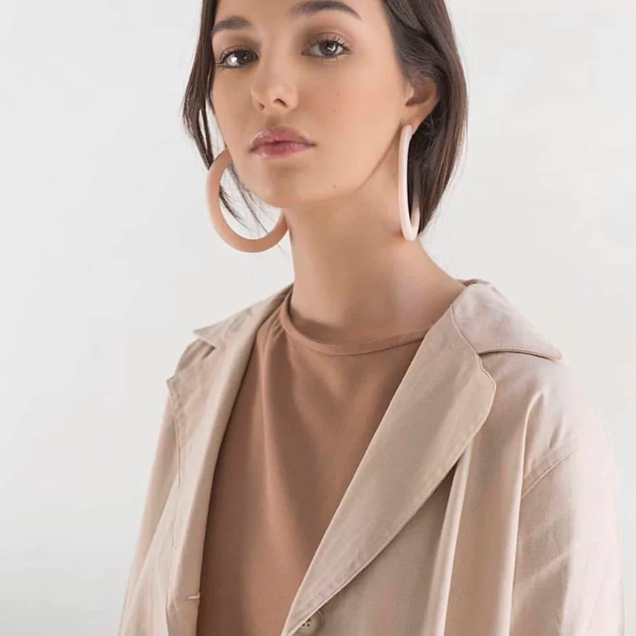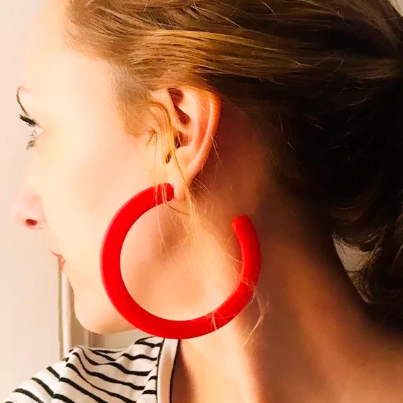 Aros de resina, tipo argollas grandes; enteramente diseñados, fabricados y terminados a mano.
