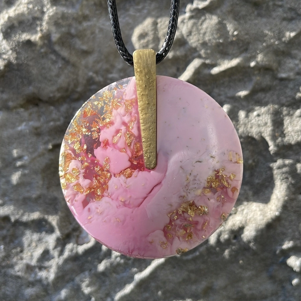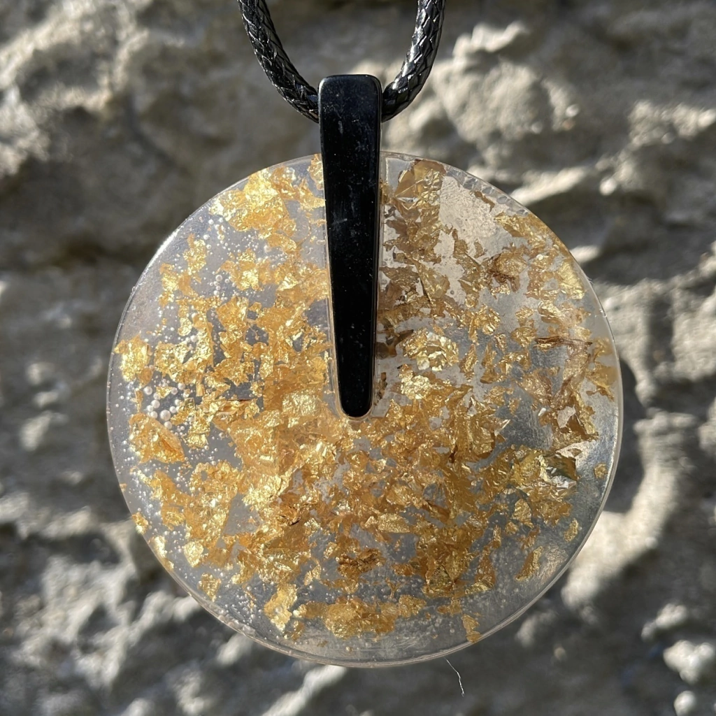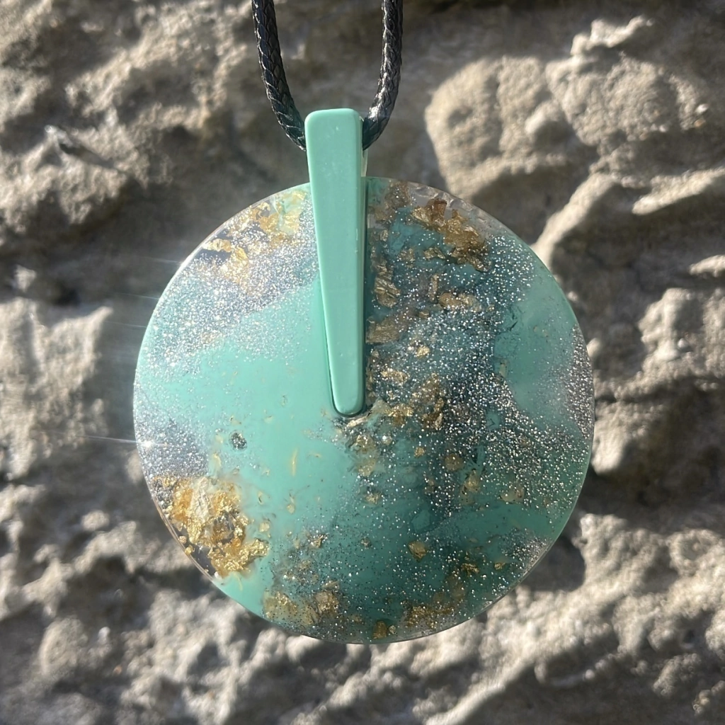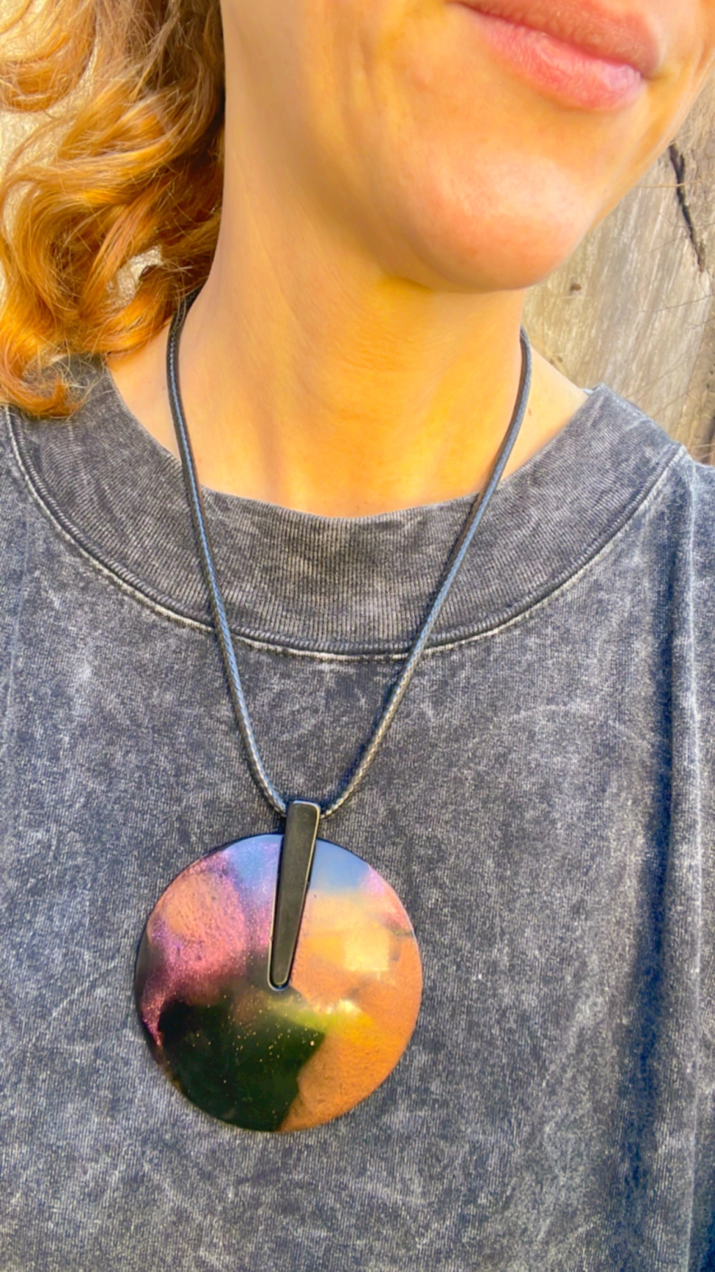 Collar de Medallon de resina realizado a mano con cordón negro y cierre con terminación exclusiva a rosca. Súper liviano!!! Para usar en todo momento o para una ocasión súper especial!!!!